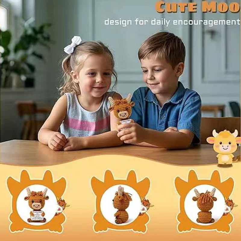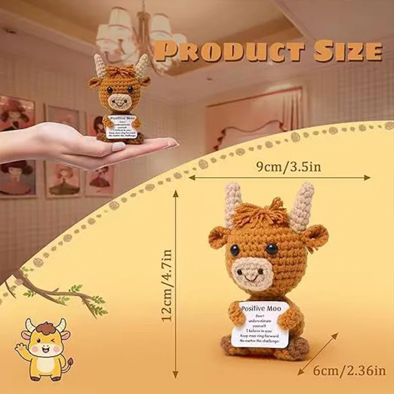 Knitted Wool Cow Toy with Positive Card