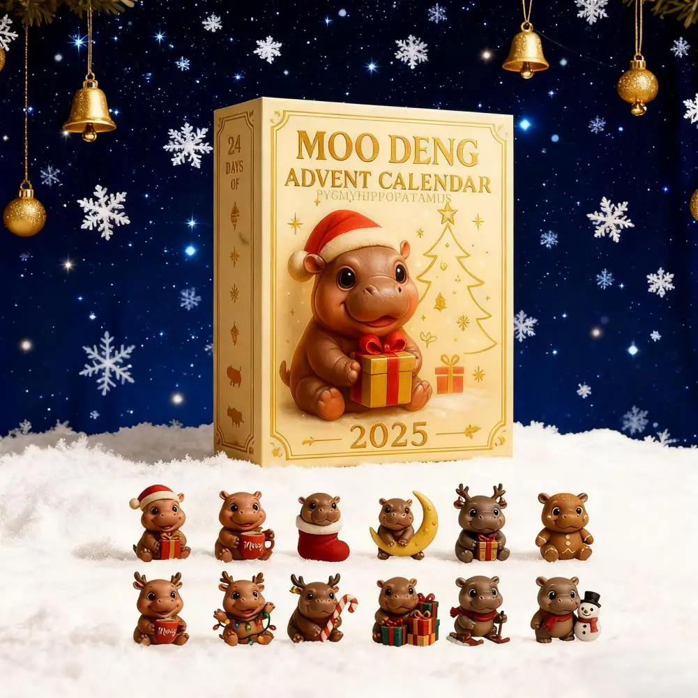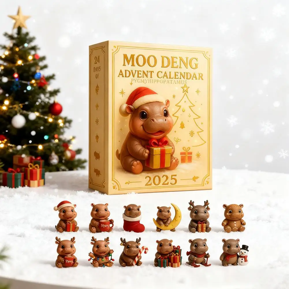 Moo Deng Advent Calendar 2025 24 Days Christmas Countdown with Acrylic Hippo Ornaments Surprise Gifts for Children And Adults