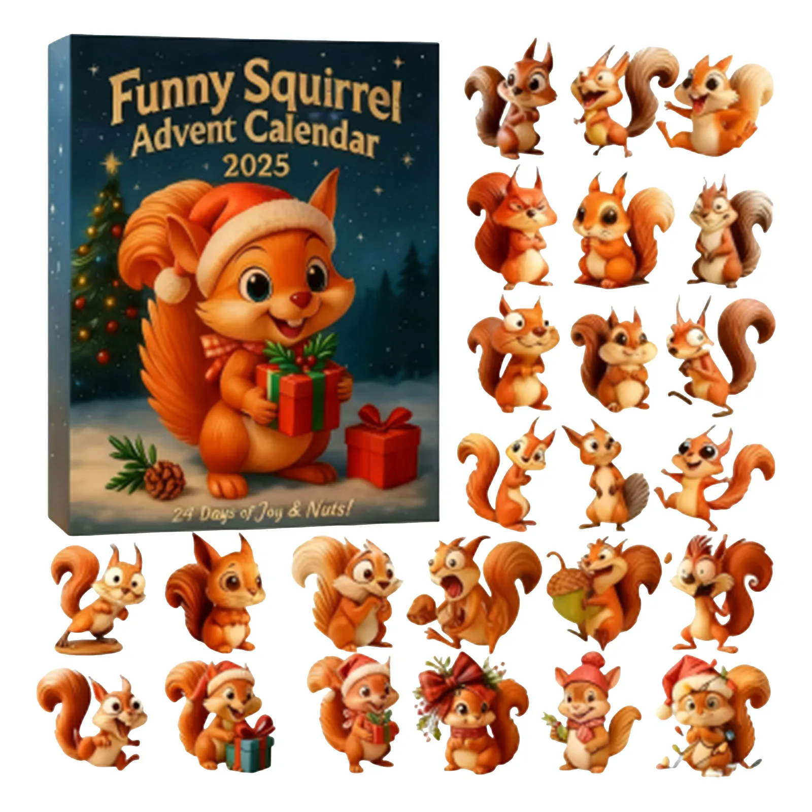 24 Days Holiday Squirrel Countdown Ornament For Christmas Tree